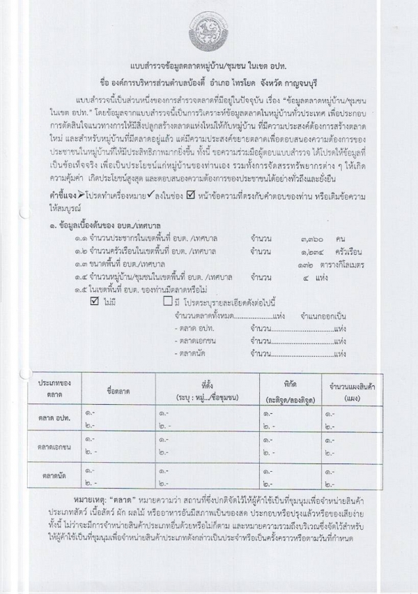 แบบสำรวจข้อมูลตลาดในเขตพื้นที่องค์การบริหารส่วนตำบลบ้องตี้